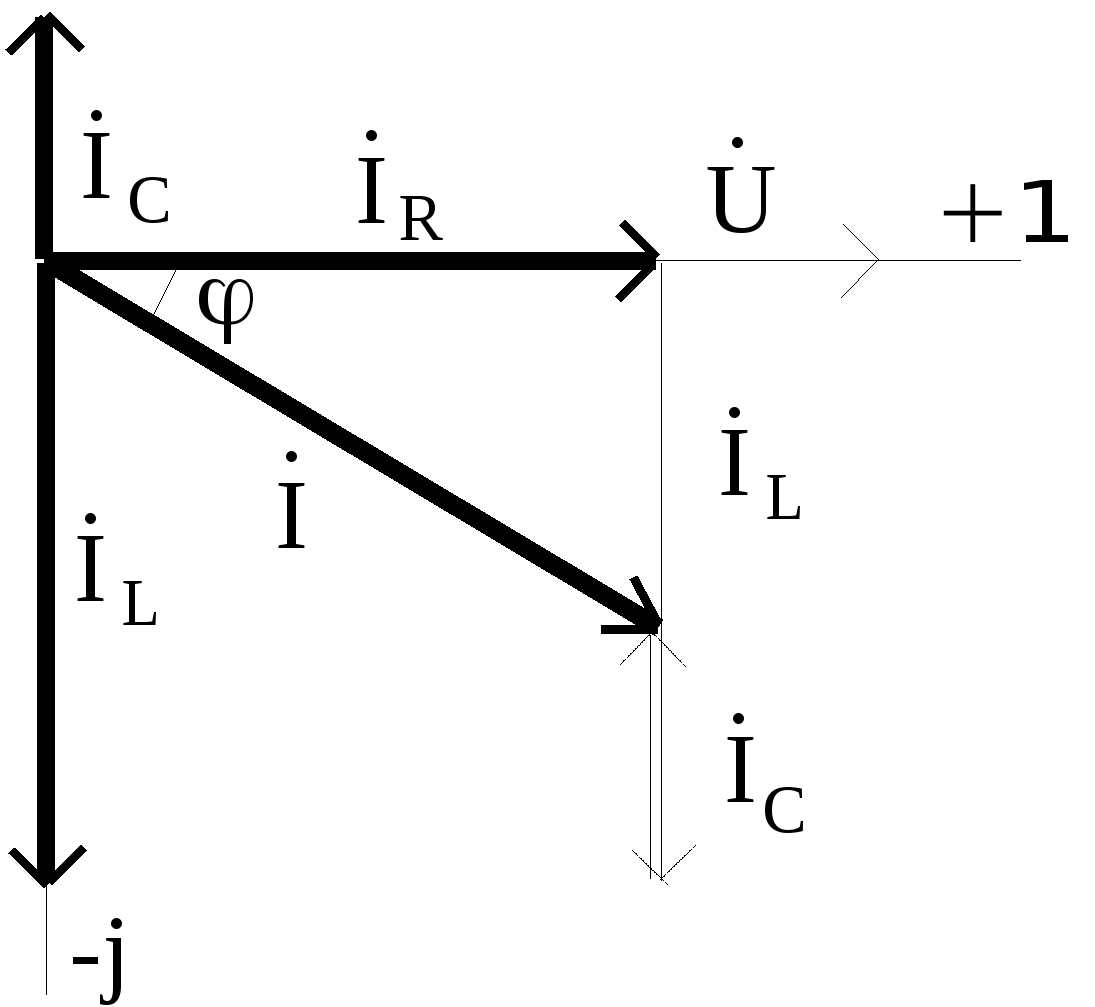 Так как вычитание — действие обратное сложению, очевидно, что для определения разности токов (например, достаточно к току прибавить вектор, обратный