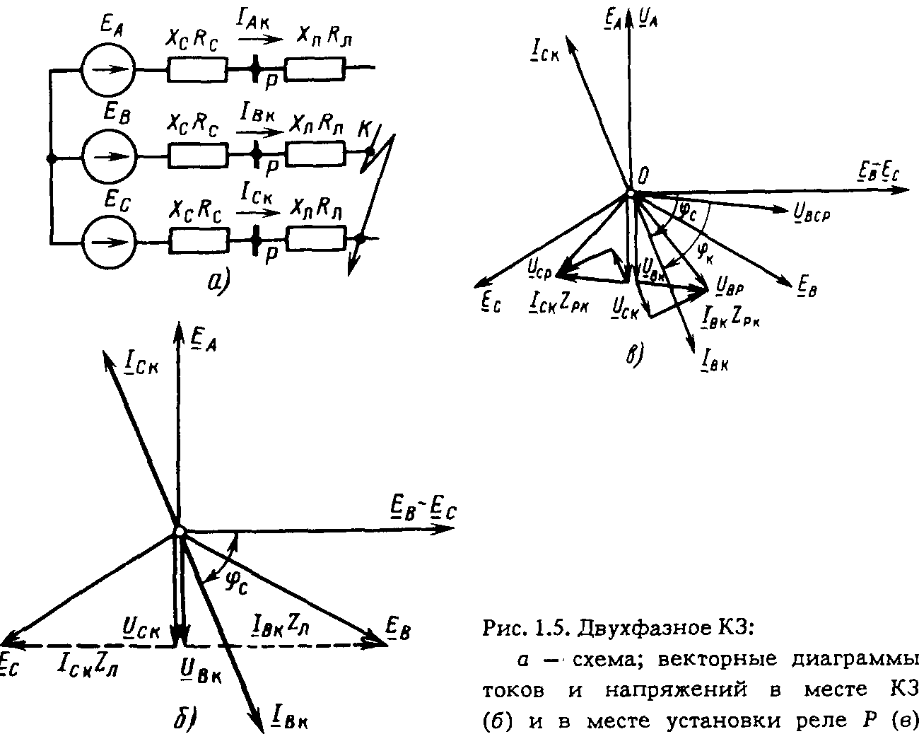 По сути дела, построение векторной диаграммы целесообразно во всех случаях, когда к рассматриваемому реле подаются две или больше электрических величин: разность токов в максимальной токовой или дифференциальной защите, ток и напряжение в реле направления мощности или в направленном реле сопротивления. Векторная диаграмма позволяет сделать заключение о том, как рассматриваемая защита будет работать при коротком замыкании, т. е. оценить правильность ее включения. Взаимное расположение векторов токов и напряжений на диаграмме определяется характеристикой рассматриваемой цепи, а также условно принятыми положительными направлениями токов и напряжений.
