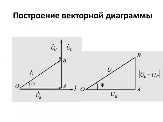 Здесь и в дальнейшем при построении векторов будем откладывать их по величине равными эффективному значению тока и напряжения, что удобно для выполнения различных математических операций с векторами. Как известно, эффективные значения тока и напряжения в раз меньше соответствующих максимальных (амплитудных) значений.