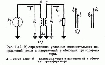 В результате при таких положительных направлениях направление тока в сопротивлении нагрузки остается таким же, что и до включения трансформатора (см. рис. 1-6 и 1-12).