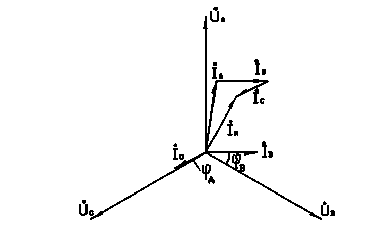 Рассмотрен для случая с исправным нулевым проводом. Векторные диаграммы напряжений и токов даны на рисунках 15 и 16; на рисунке 17 дана совмещенная диаграмма токов и напряжений
