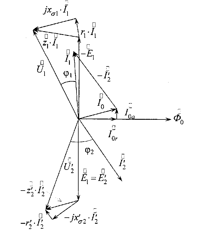 Принятые положительные направления токов в обмотках трансформатора удобны тем, что векторы первичного и