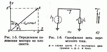На основании рис. 1-5 можно также сказать, что ток в данный момент времени имеет положительную величину. Однако это еще не дает полного представления о протекании процесса в цепи переменного тока, так как неизвестно, что значит положительный или отрицательный ток, положительное или отрицательное напряжение.