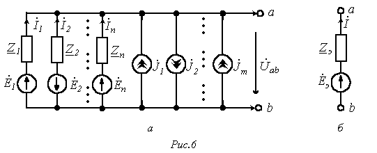Рассмотрим участок цепи на рис. 5,а. При расчете внешней по отношению к этому участку цепи данную ветвь можно свести к виду на рис. 5,б, где
