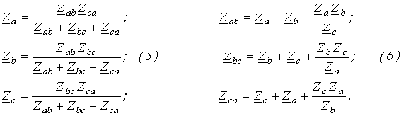 - Определить сопротивления ветвей звезды, эквивалентной треугольнику в цепи на рис. 8, состоящему из элементов , и .