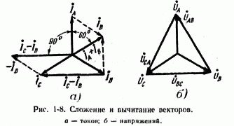 Вместе с тем на рис. 1-8, а показано, что вектор разности токов можно построить проще, соединив линией концы векторов При этом стрелка вектора разности токов направлена в сторону первого вектора, т. е.