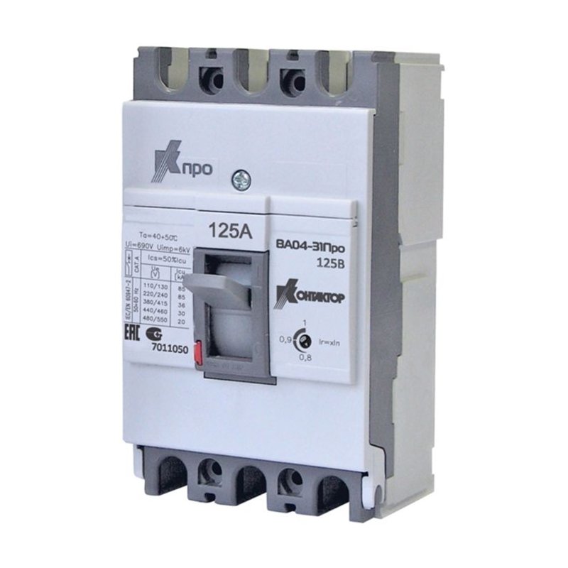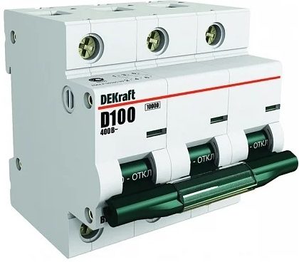 Автоматический выключатель представляет собой блок с тремя полюсами, тип расцепления и чувствительности класса C. Номинальное напряжение достигает 380 вольт. Отключающая способность прибора проявляется при превышении напряжения в 4.5 кА. В модели предусмотрен монтаж к DIN- рейке. Средняя стоимость: 600 рублей.