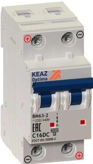 Автоматический выключатель КЭАЗ OptiDin ВМ63-DC 2P (C) 6kA