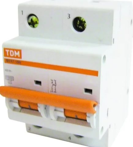 Тип расцепления D, поэтому редко применяется непосредственно в домашних условиях. Двухполюсник, номинальное напряжение выдерживает до 220 вольт. Отключающая способность составляет 10 кА. Относится к классу защиты IP 20. Элемент управления — рычажный, АВ дополнен возможностью монтажа на DIN-рейку. Средняя цена: 1000 рублей.