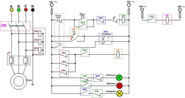 Схема управления асинхронным двигателем с применением промежуточного реле