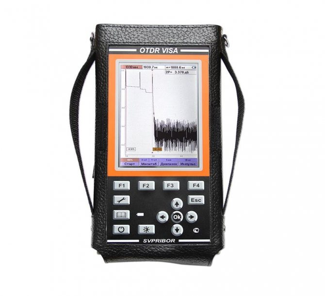 - оптический рефлектометр (ОТDR) – дает возможность определения не только уровня потерь в системе, но и места повреждения оптокабеля;