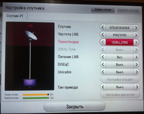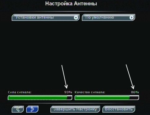 Для проверки уровня спутникового сигнала следует зайти в настройки ресивера: