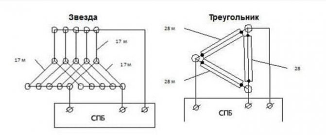 Подключение для прогрева бетонных смесей можно производить по двум типам схем: звездой и треугольником.