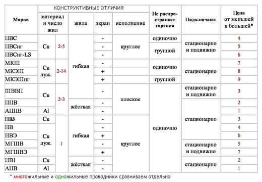 Конструктивные особенности также отражаются в маркировке. Например, монолитность или многопроволочность внутреннего элемента, наличие изоляции. Дополнительно указывается тип – провод, кабель или шнур.