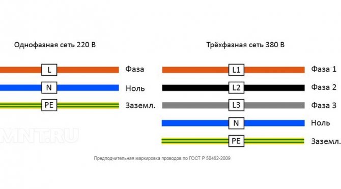 Представленная ниже маркировка проводов разработана для сетей и электроустановок переменного тока (трансформаторы, подстанции и т.п.) с глухозаземлённой нейтралью и номинальным напряжением не более 1 кВ. Этим условиям соответствует большая часть жилых и административных зданий.