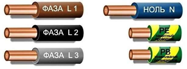 Многожильные кабели обозначают в последовательности от L до LN, например, L1, L2, L3 и т. д. Маркировка всех фазных проводов различная, например, фиолетовая, серая, коричневая, красная.