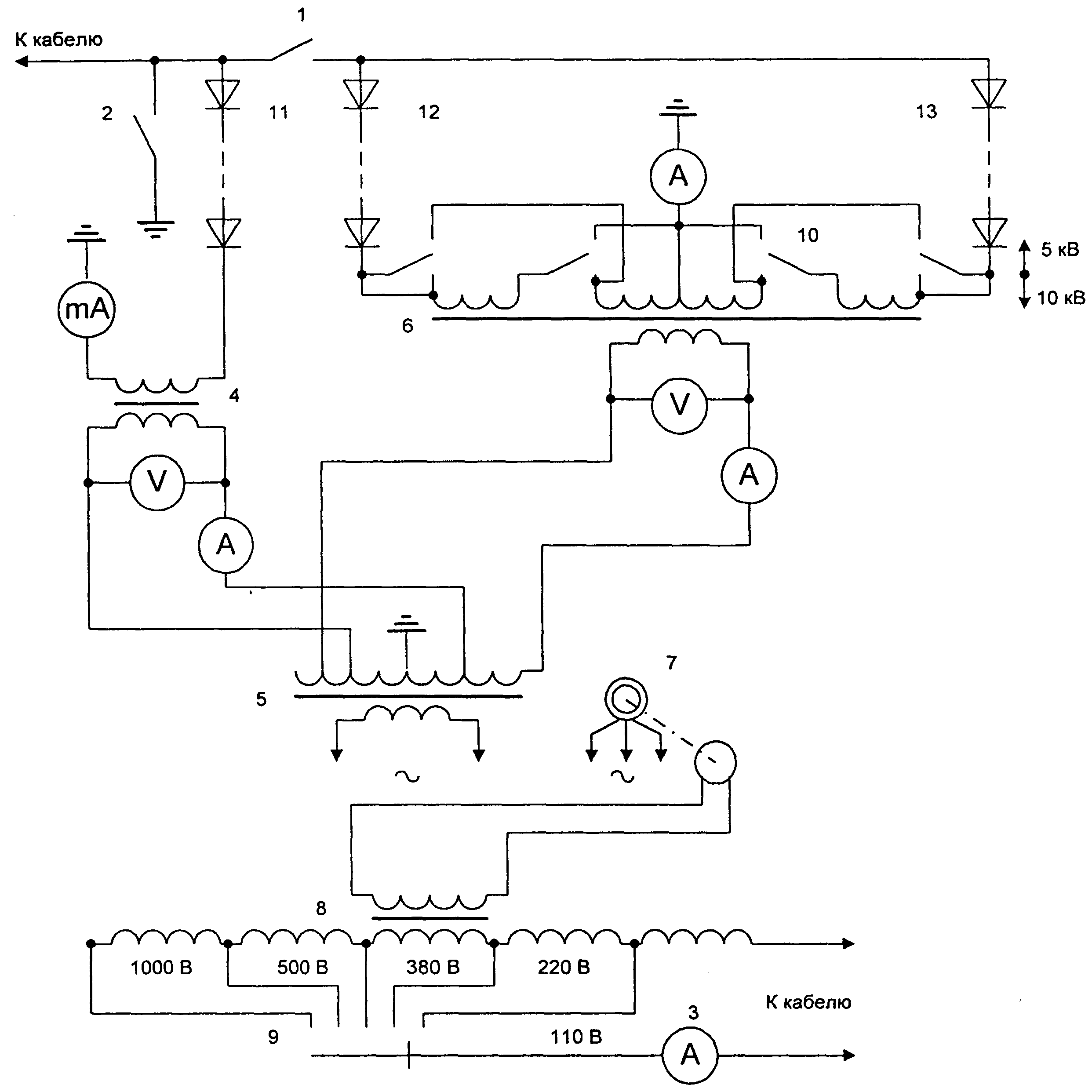 Если при испытании наблюдается нарастание тока утечки в зависимости от времени приложения напряжения или замечаются толчки тока утечки, то время испытания следует увеличить до 15 – 20 мин.