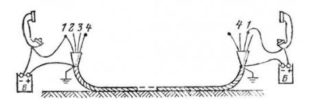 Для создания электрического разряда в месте повреждения кабеля должно быть сквозное отверстие, образуемое припрожигании кабеля газотронной установкой, а также достаточное переходное сопротивление для образования искрового разряда.