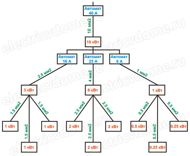 Таким образом, выбор автомата производят по минимальному сечению провода, который используется в проводке.