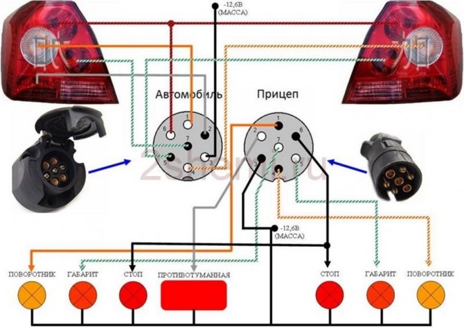Определение разъема можно охарактеризовать как сочетание вилок и розеток, которые подключаются после того, как прицеп надели на ТСУ.
