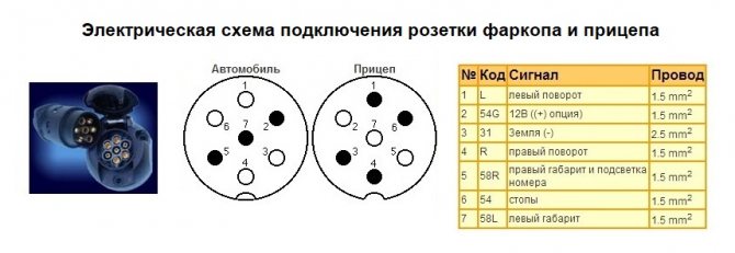 Детальная распиновка розетки полуприцепа для каждого вида транспорта находится ниже.