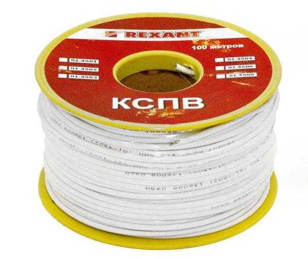 - КСПВ – качественный провод, который применяют при обустройстве систем сигнализации и видеонаблюдения. Содержит двухслойную изоляцию: внутренняя оболочка изготавливается из полиэтилена, наружная – поливинилхлорида. Зачастую внешняя изоляция имеет белый цвет.