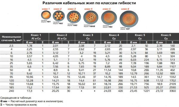 - В соответствии с ГОСТ для проводов с площадью сечения 0,5-10 кв. мм могут производиться как единая жила. Только такие изделия относятся к первому классу гибкости.
