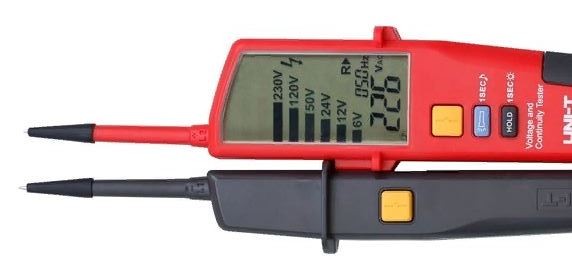Указатель высокого напряжения с двумя измерительными контактами работает по принципу фиксации прохождения тока на участке цепи. Внутренняя схема сравнивает разность потенциалов между точкой измерения и заземлением (или нулевым контактом). Если порог срабатывания превышает установленное значение, срабатывает индикация.