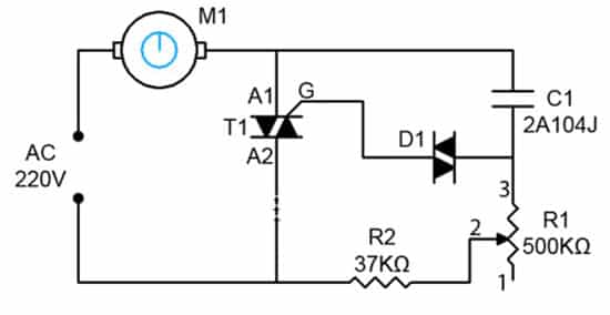 В описанной схеме, обороты будут регулироваться при помощи потенциометра P1. Параметром P1 определяется фаза входящего импульсного сигнала, который в свою очередь открывает симистор. Такая схема может применяться как в полевом хозяйстве, так и в домашнем. Можно использовать данный регулятор для швейных машинок, вентиляторов, настольных сверлильных станков.