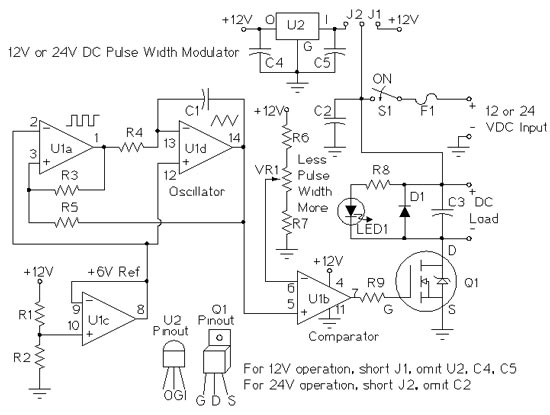 Выходные транзисторы коммутируются с высокой частотой (около 50 кГц), если при этом изменить ширину импульсов и пауз между ними, то изменится и результирующее напряжение на нагрузке. Чем короче импульс и длиннее паузы между ними, тем меньше в итоге напряжение и подводимая мощность.
