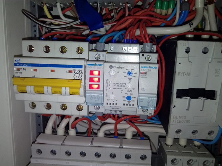 Реле контроля фаз устанавливается в цепи питания ответственных электродвигателей. Его работа незаметна. Но в случае обрыва одной из фаз данное автоматическое устройство спасет дорогостоящий двигатель от сгорания обмоток.