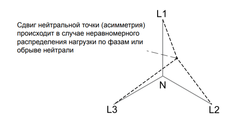 Несбалансированность в электросетях обычно проявляется как значительное различие амплитуд фазных напряжений, поступающих с районной подстанции. Такой дисбаланс наблюдается в ситуациях, когда на стороне потребителя нарушено равномерное распределение нагрузок по каждой из фаз. Его наличие в системе приводит к разбросу токов в отдельных линиях, что заметно сокращает срок службы подключенного оборудования (электродвигателей, например).