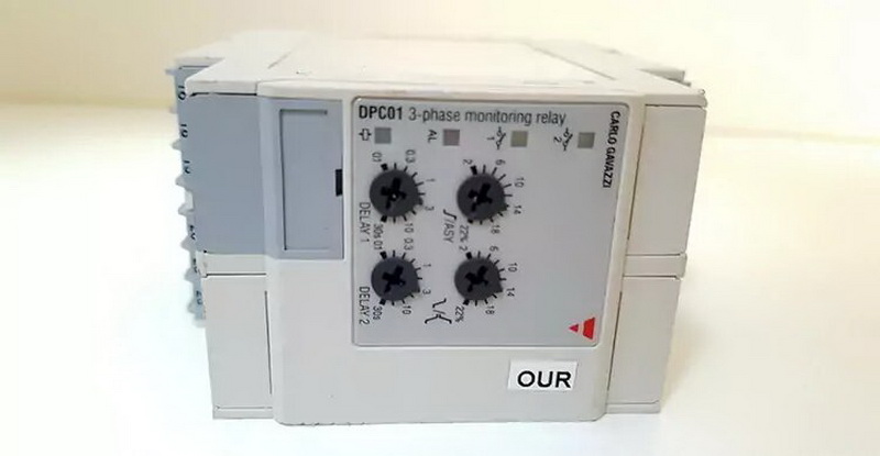 Мультифункциональное трехфазное РКФ с расширенным перечнем регулировок. Реле данного производителя встречается в промышленном компрессорном оборудовании. На передней панели имеются стандартные регуляторы напряжения и задержки срабатывания. А также индикаторные светодиоды, что облегчает взаимодействие человека с устройством.