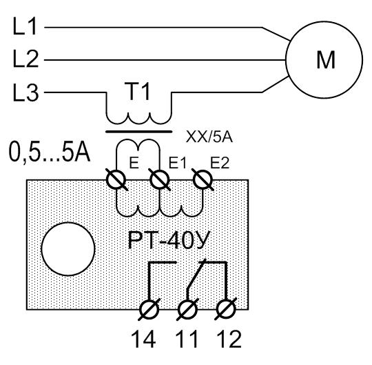 Значительно чаще, электрические схемы соединения реле тока предполагают использование трансформаторов тока. Эти устройства позволяют преобразовать любой ток до значений в 1 или 5 А.