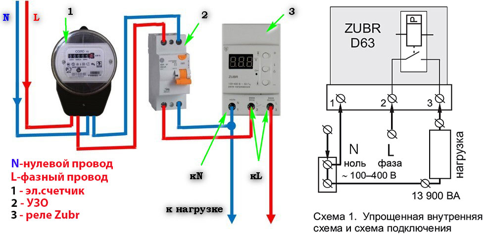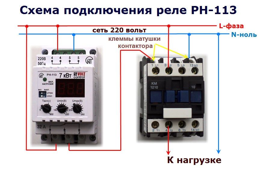 Реле контроля сетевого напряжения – это отличная защита от «обрыва нуля» и резких перепадов вольтажа. Подключить его несложно. Надо лишь вставить соответствующие провода в клеммы и затянуть их. Практически во всех случаях применяется стандартная схема с прямой нагрузкой через РКН.