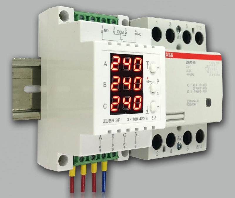 Реле контроля напряжения выбирается с учетом количества питающих фаз и максимальной мощности потребителя. Желательно приобретать защитное устройство с запасом по току в 20-30 %. Если необходимо контролировать потребляемый ток, то лучше установить прибор со встроенным амперметром.