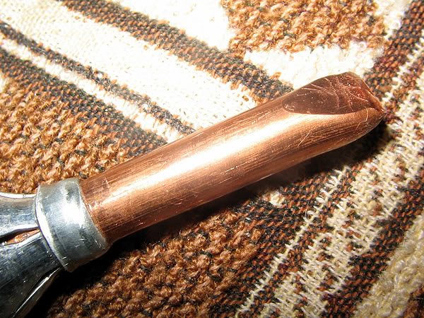 Жало у паяльника должно быть заточено под углом 45о, и не иметь дефектов на поверхности. Затачиваем его, если нужно удаляем лишний металл до получения ровной поверхности.