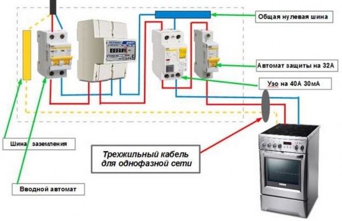 - В распределительном щитке на плиту устанавливается отдельный автомат и УЗО.