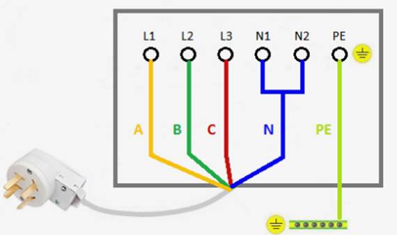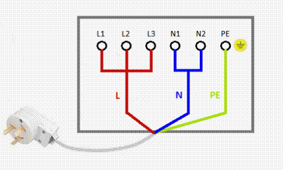 К однофазной сети осуществляется подключение в городских квартирах многоэтажек, где вся проводка выполнена при помощи трехжильного провода. Чтобы без ошибок подсоединить новую бытовую технику, надо использовать специальные перемычки из меди сечением не менее 6 мм — они обычно присутствуют в распределительных коробках. Если по какой-то причине они отсутствуют, то их легко можно купить в магазине электротоваров. Соединение выполняется по следующей схеме: