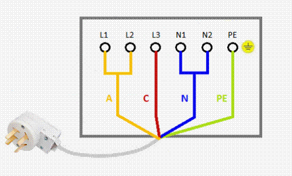 Для штепсельного подключения электроплиты по двухфазной схеме необходимо приобрести комплект «вилка-электророзетка» для питания трехфазного оборудования, при этом один штекер вилки буде незадействован.