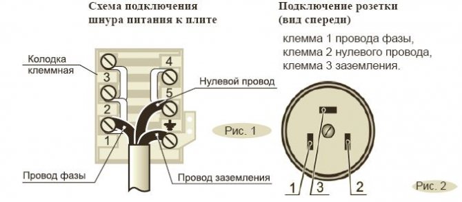 Что касается другой стороны кабеля, то он подключается к плите через клеммы, которые являются неотъемлемой частью бытового прибора. Как было сказано выше, подключение можно провести и через розетку. Это более удобный вариант в плане отключения плиты и переноса её в другое место. Но менее безопасный.