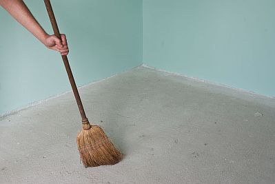 - Подготавливается основание — его нужно выровнять и очистить от мусора. Если пол имеет большие перепады, то лучше его залить тонким слоем черновой стяжки.