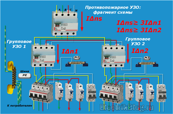 Схему построения иерархии уставок токов утечек показываю на примере подключения трехфазного УЗО. Все ее принципы идентичны для использования дифавтоматов и однофазной бытовой проводки.