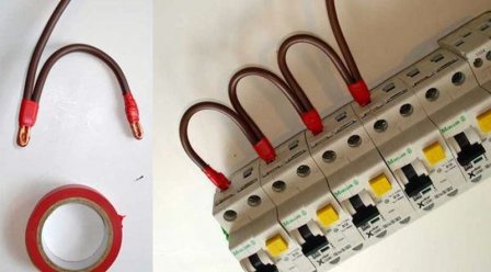 К достоинствам применения перемычек можно отнести невысокие затраты на изготовление. Если перемычки выполнены из неразрывного провода, то имеется возможность выполнить замену вышедшего из строя автоматического выключателя без отключения других автоматов.