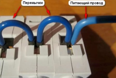 И еще не вздумайте делать перемычки между автоматами вот таким образом как на фото ниже: