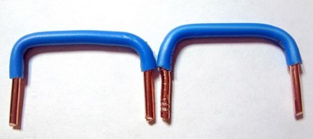 Длинна оголенной части провода должна составлять 12мм. Затем провод изгибают, придавая перемычке нужную форму. В случае применения гибкого провода на оголенные концы напрессовывают наконечники с помощью пресс-клещей.