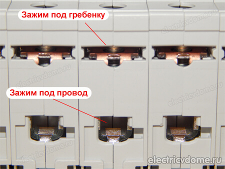 Поэтому при покупке такой гребенки учитывайте имеется ли в автоматическом выключателе соответствующий зажим. Иначе в противном случае в обычный автомат такую гребенку не засунешь, и вы зря потратите деньги.