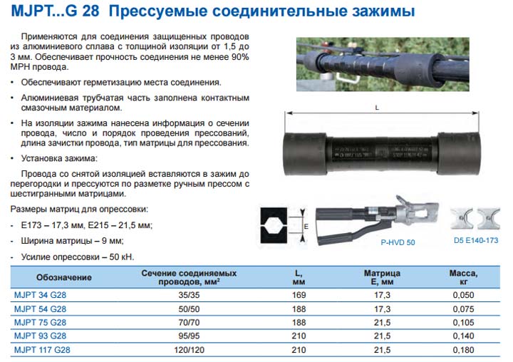 Соединение провода СИП. Соединительные зажимы MJPT, MJPT N, соединительные гильзы MJPT, MJPT N