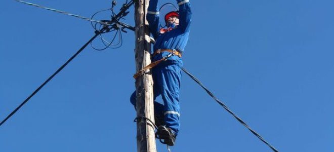 После этого, один из двух работников поднимается по опоре, а второй ведет постоянный надзор и контролирует его работу. Подниматься на опору нужно с боковой или противоположной стороны, от той где подвешен провод СИП. Делается это для того, чтобы в случае его падения, он не утянул вас за собой.