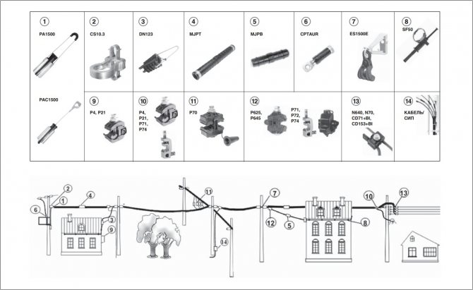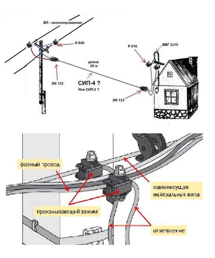 И если с прокладкой провода СИП всё более-менее понятно, то вот с его соединением, и, тем более с медным проводом, остаётся достаточно большое количество вопросов. Чем соединять СИП провод между собой? Как его соединить с медным кабелем при вводе в дом? Именно об этом и будет рассказано ниже.